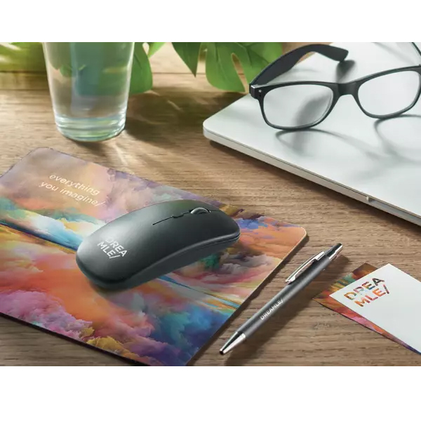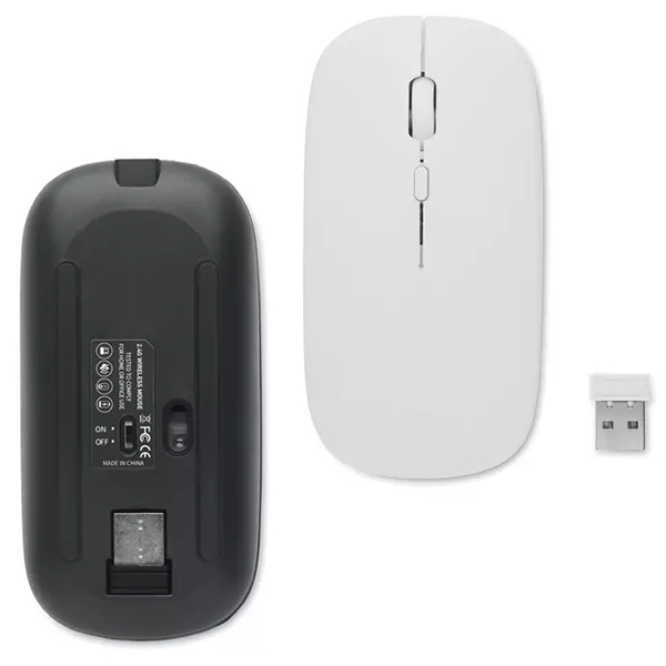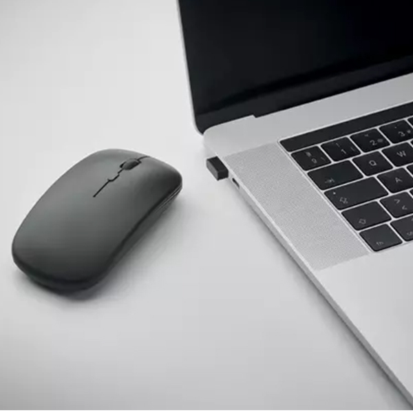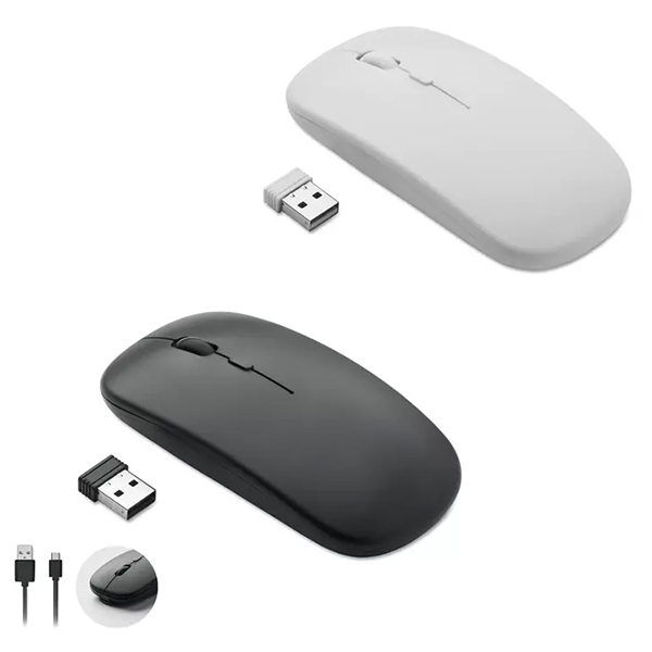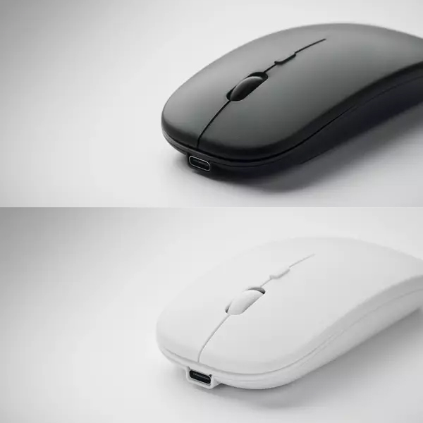 Безжична оптична мишка, изработена от рециклирана ABS пластмаса. Вградена батерия 500 mAh и включен USB Type-C кабел за зареждане. Три опции за DPI – 800, 1200 и 1600.