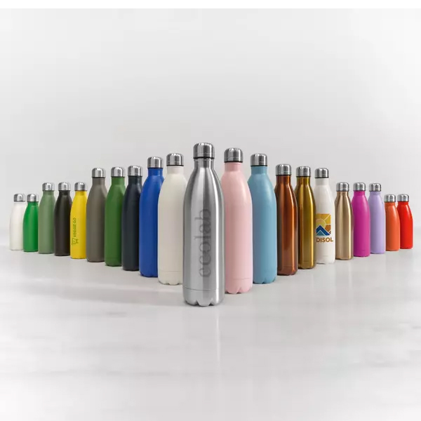 Бутилка 810 ml, изработена от рециклирана неръждаема стомана за сублимация. Двойно изолираната стена поддържа напитките ви топли в продължение на 14 часа и студени в продължение на 48 часа. Бутилката е херметична и подходяща за съдомиялна машина. Привлекателен аксесоар, който ще ви помогне да останете хидратирани. Предлага се в 4 различни обема и във варианти с метално покритие, матово покритие и за сублимация.