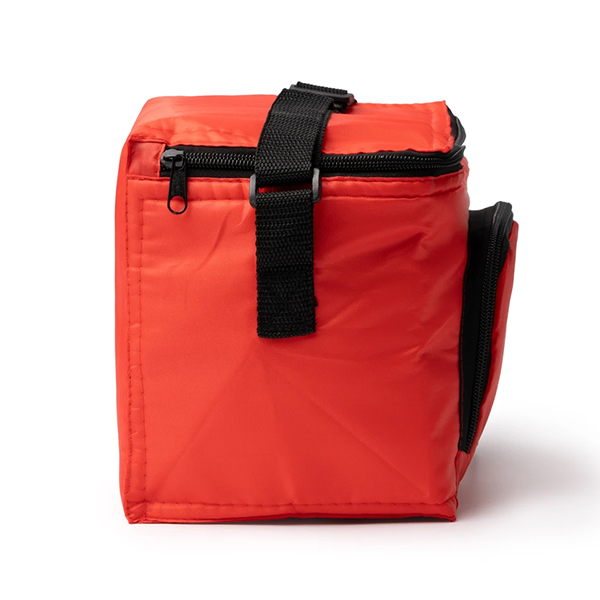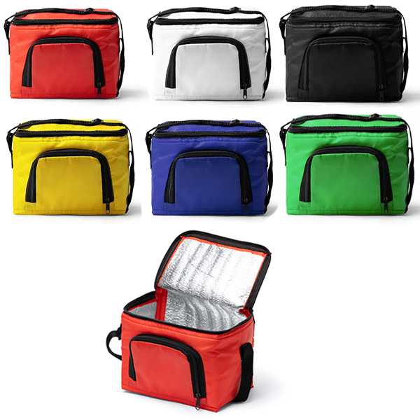 Практична термо чанта от екологичен 210T RPET полиестер с изотермична вътрешна част. Разполага с преден джоб с цип и регулируема дръжка за пренасяне. Идеална за пикници, плаж и пътувания.