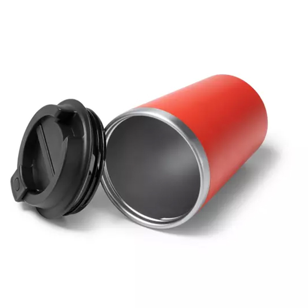 Термочаша от неръждаема стомана отвътре и пластмаса отвън, с пластмасово капаче за пиене. Вместимост: 350ml