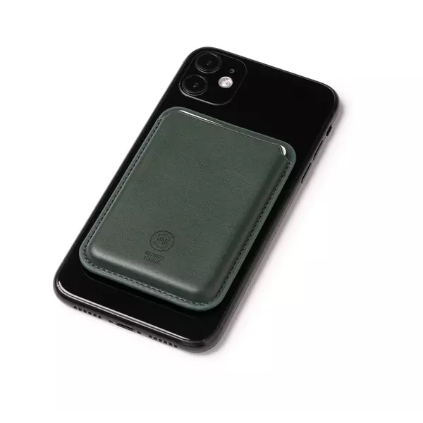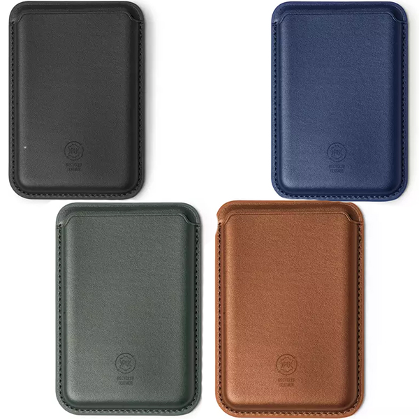 Компактен и стилен калъф за карти от рециклирана еко кожа с магнитно затваряне и вграден магнит за закрепване към телефона. Подходящ за брандиране и идеален за ежедневна употреба или корпоративни подаръци.