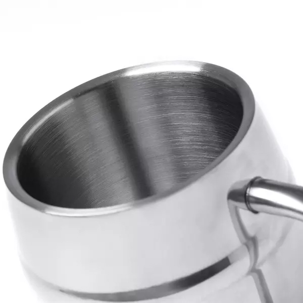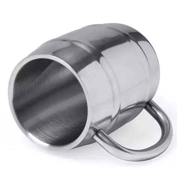 Здрава и стилна чаша за бира, изработена от двустенна неръждаема стомана с матирано покритие. Подходяща както за ежедневна употреба, така и за специални поводи и подаръчни комплекти. Двойната стена помага за по-дълго задържане на температурата на напитката, а удобната дръжка осигурява стабилен захват. Вместимостта е 420 ml, а размерите са Ø8.5×11 cm. Предлага се в индивидуална бяла кутия. Подходяща за лазерно гравиране.