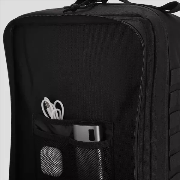 Универсална раница, подходяща за спорт, туризъм и ежедневна употреба, изработена от издръжлив RPET 600D полиестер. Предна част с множество джобове и велкро ленти за закачане на необходими аксесоари. Основно отделение с двоен цип и вътрешни джобове с различни отделения, с капацитет за 17" лаптоп. Подсилени ъгли и дръжка за носене, подплатени и регулируеми презрамки и гръб, както и предни презрамки за допълнителен комфорт.