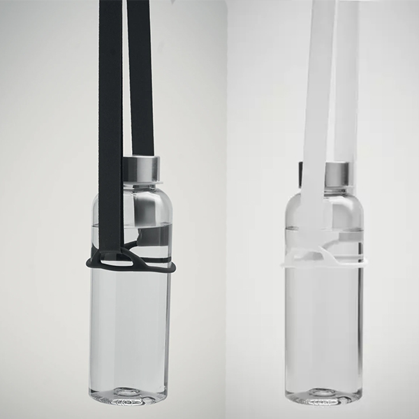 Практична лента за врат с държач за бутилка от силикон (диаметър 6 см). Ширина на лентата: 20 мм. Регулируема дължина на лентата. Идеална за спорт, събития и туризъм.