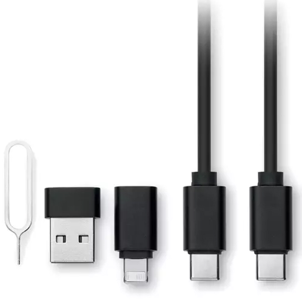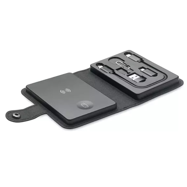Универсален комплект за зареждане, изработен от рециклирани PU, RPET, ABS и алуминий.