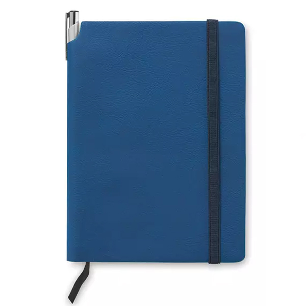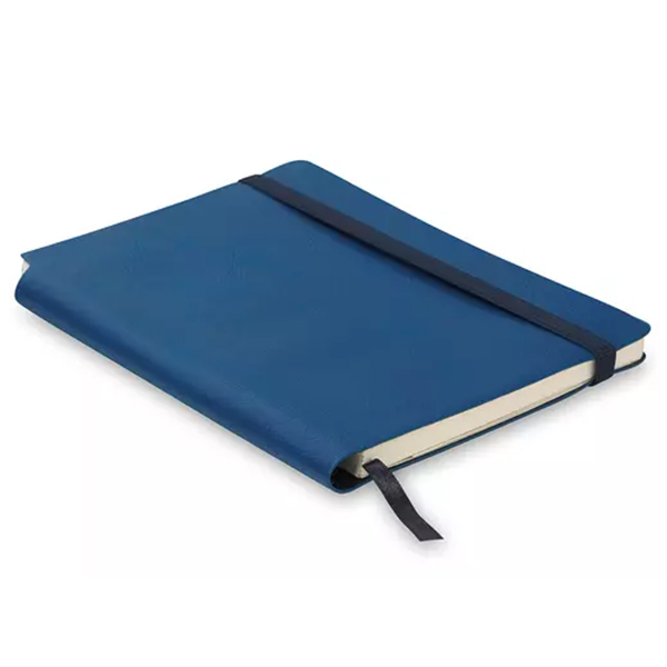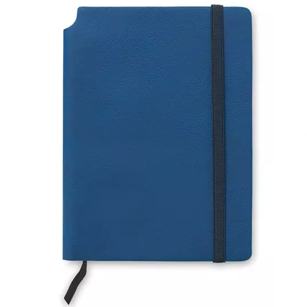 Тефтер А5 с мека PU корица. Каса. 160 страници на редове от рециклирана хартия (80 листа). Разполага с еластична лента за затваряне, отметка за отбелязване, разширяем вътрешен джоб на гърба, и поставка за химикалка в задната част.