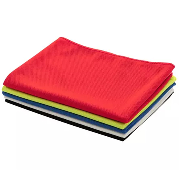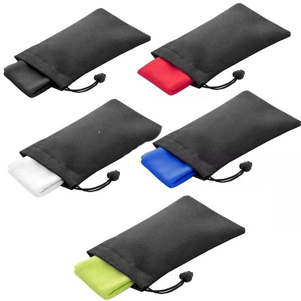 Удобна кърпа за охлаждане по време на спортна активност, изработена от 100% рециклиран полиестер (rPET). Включена е черна нетъкана торбичка за съхранение. Подходяща за многократна употреба и пране в пералня.