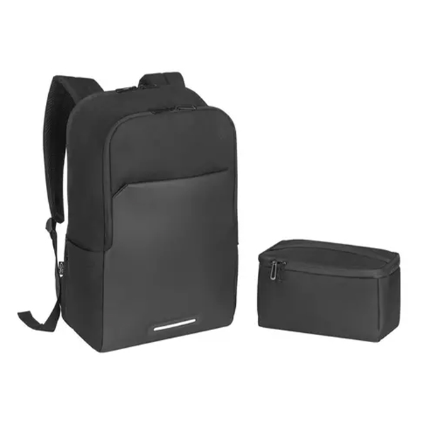 Иновативна комбинация от раница и термо чанта, които могат да се използват заедно или поотделно. Раницата е с вместимост от 20 L, и има отделение за лаптоп до 17,3". Включва предно отделение с подвижна преграда за термо чантата, преден джоб с цип, страничен джоб за бутилка, светлоотразителни детайли и презрамка за закачане за куфар. Термо чантата е с капацитет от 4,5 L и има PEVA изолация.