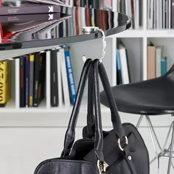 Сгъваема метална закачалка за чанти с магнитно затваряне и покритие от еко кожа.