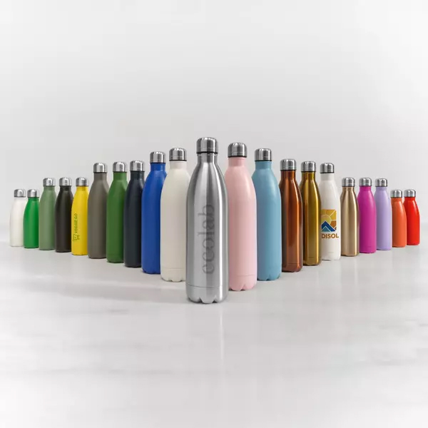 Бутилка 535 ml, изработена от рециклирана неръждаема стомана за сублимация. Двойно изолираната стена поддържа напитките ви топли в продължение на 14 часа и студени в продължение на 48 часа. Бутилката е херметична и подходяща за съдомиялна машина. Привлекателен аксесоар, който ще ви помогне да останете хидратирани. Предлага се в 4 различни обема и във варианти с метално покритие, матово покритие и за сублимация. Доставя се в екологична крафт кутия.