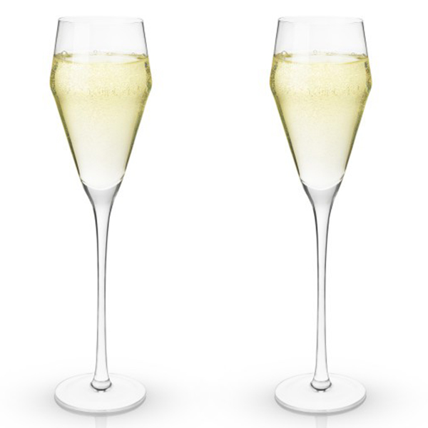 Това дуо чаши е изработено от безоловен кристал в елегантен, модерен дизайн, който най-добре допълва вкуса на просеко. Докато ароматите на виното реагират различно спрямо формата на чашите, то тeсният и издължен дизайн на тези чаши запазва карбонизацията.