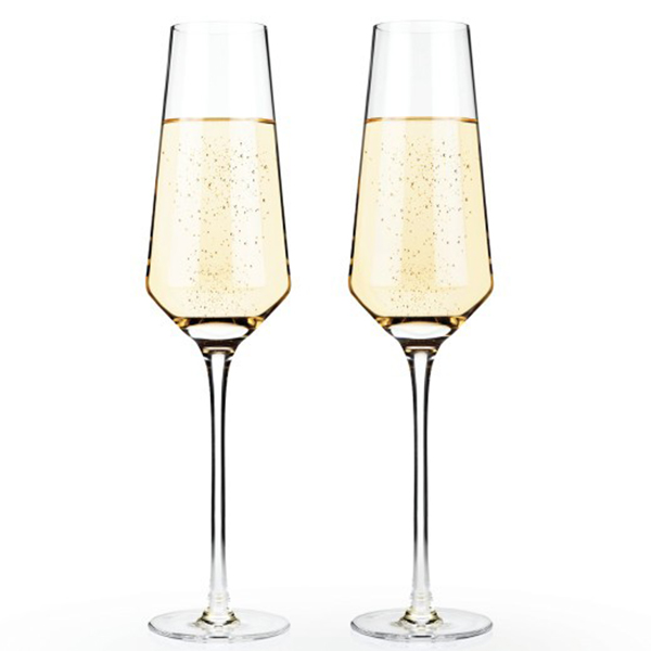 Това дуо чаши е изработено от безоловен кристал в елегантен, модерен дизайн, който най-добре допълва вкуса на шампанското. Докато ароматите на виното реагират различно спрямо формата на чашите, то тeсният и издължен дизайн на тези чаши запазва карбонизацията.