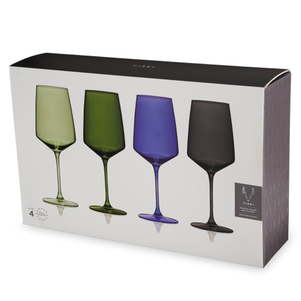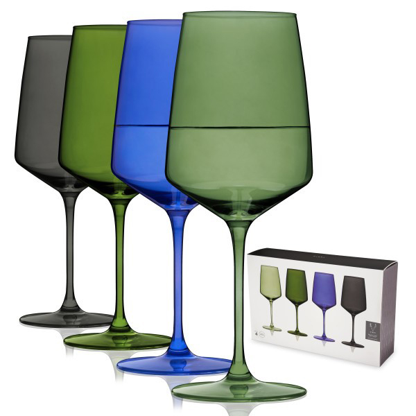 VISKI Кристални чаши за вино “Nouveau“ 4 бр. - опушено сиво, кобалт, бор и градински чай - 650 мл.