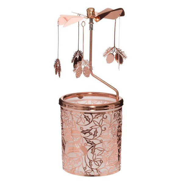 Внесете магията на зимата и празничния уют във вашия дом с този елегантен въртящ се свещник. Изработен от висококачествен метал и матирано стъкло, свещникът се отличава с деликатен дизайн с коледни шишарки, които ще създадат приказна атмосфера в стаята. Този свещник е идеална декорация за коледните и новогодишни празници, но също така е чудесен подарък за всеки, който цени красотата и уюта. Дизайн: Елегантна стъклена основа с релефна декорация, завършена със метален карусел с висящи шишарки. Материал: Висококачествен метал и стъкло. Металните части са с покритие, което ги предпазва от ръжда и избледняване. Идеален за: Създаване на романтична и релаксираща атмосфера, декорация за празници, подарък за специални поводи. Как работи? Свещникът работи на принципа на термодинамиката и не изисква батерии или електричество. Когато запалите чаена свещичка в стъклената основа, топлината от пламъка затопля въздуха над нея. Този топъл въздух се издига и завърта металните перки на горната част на карусела. Висящите шишарки, прикрепени към карусела, започват да се въртят, хвърляйки танцуващи отблясъци по стените и тавана, което създава красив и завладяващ визуален ефект.