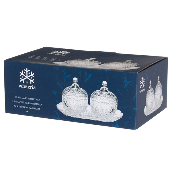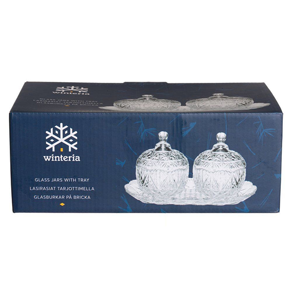 WINTERIA Сет от два стъклени канистъра с капак и поднос