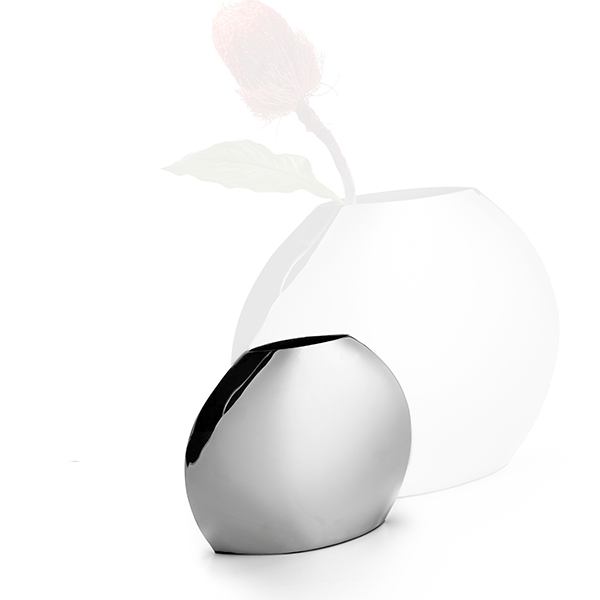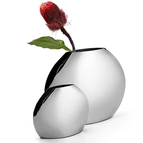 Пленителни извивки в перфектна симетрия, огледална повърхност и тесен отвор - това е достатъчно, за да ви накара да се загледате в нея. И няма нужда от пищен букет - привлекателността се крие в простотата. Дори единични цветя или малка аранжировка създават желания уау ефект. EMILIA е "малката черна рокля" сред вазите. Въпреки тънката си форми, двете вази с различни размери (S/L), изработени от здрава неръждаема стомана, стоят стабилно и изящно.
