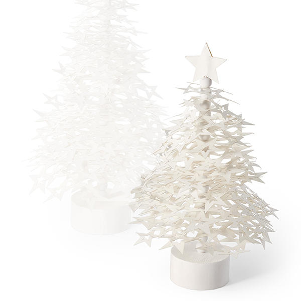 Коледната елха NORDIC от Philippi превръща празничния символ на елхата в модерен, поетичен дизайн. Състояща се от безброй малки елементи с форма на звезда, тя създава елегантен силует, който съчетава лекота и симетрия. Изцяло в бяло, тя наподобява деликатна снежна скулптура - стилна и вечна. Изработена от висококачествени материали и монтирана върху семпла кръгла основа, декоративната елха внася зимна естетика във всеки интериор. Ясната форма, съчетана с ефирната звездна структура, създава завладяващо взаимодействие на светлина и сянка. Независимо дали е във входното антре, на перваза на прозореца или като празничен елемент на масата - коледната елха NORDIC е впечатляващ акцент. Предлага се в два размера.