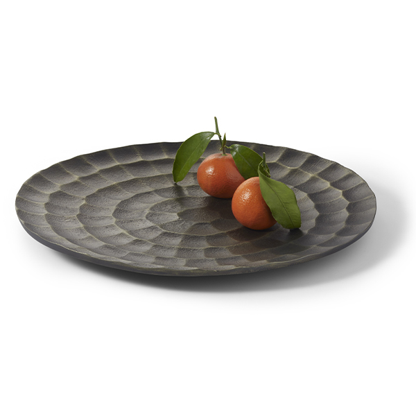Нейният изключителен дизайн напомня на концентрични вълни, разпръскващи се по спокойна вода – ефект, изкусно подсилен от леко обработената текстура на металната повърхност. Изработена от тъмно тониран алуминий с фино блестящо покритие, SUNSET въплъщава семпла елегантност - перфектния фон за цветни акценти – било то пресни плодове, ядки или сладкарски изделия. Дори без никакви предмети върху нея, скулптурната текстура и хармоничната форма на SUNSET я правят впечатляващ дизайнерски обект. Независимо дали е поставена на бюфет, в трапезарията или като стилен елемент на масата. SUNSET се вписва безпроблемно както в модерни, така и в класически жилищни пространства. Изглежда ненатрапчива, но оставя впечатление – точно като перфектен залез.