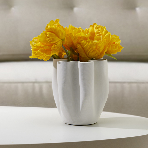 LIVREE е най-вълнуващото доказателство, че модерните технологии и традициите в никакъв случай не си противоречат. Красиво извитата, плисирана керамична ваза на PHILIPPI е конструирана чрез модерен процес на 3D принтиране и след това е изпечена в пещ при 1200°C за приблизително три часа. Вълнообразният вид на иновативната ваза за цветя предлага изобилие от възможности за креативни цветни аранжировки и декорации. Уникално фината ѝ структура в кремаво бяло е допълнително запечатана отвътре с водоустойчиво покритие до половината от височината ѝ.
