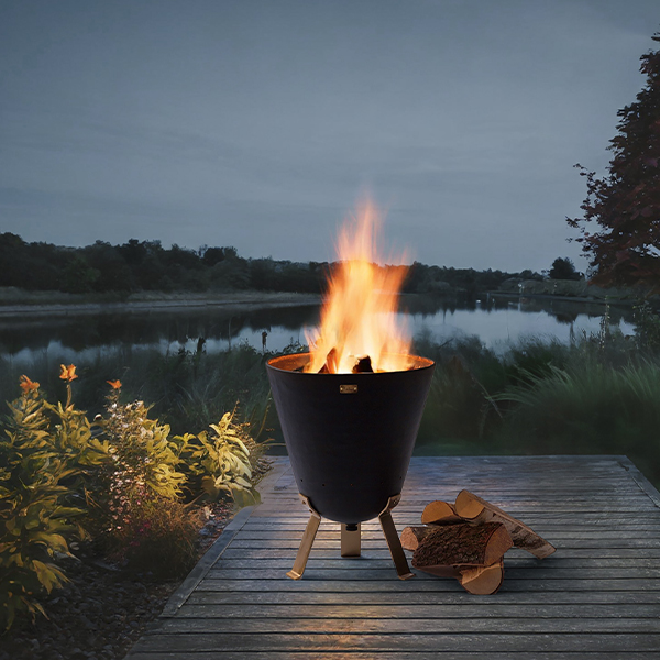 Кой е най-добрият начин да прекарате времето си на чист въздух? С уютен огън! За да направите това възможно най-безопасно и чисто, препоръчваме да използвате огнището BONFIRE Трите месингови крака осигуряват луксозен контраст с черното конусовидното тяло, изработено от масивна праховобоядисана стомана. Красивата "огнена кошница" е с функция 2 в 1 и може бързо да се трансформира в скара, ако поставите и подвижната плоча , която се предлага се отделно.