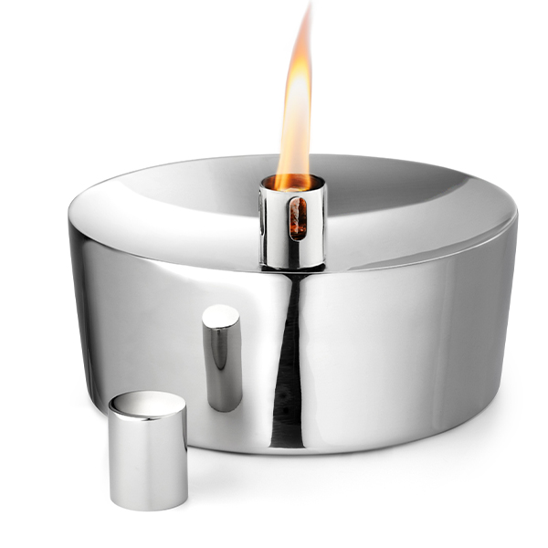 Нейната полирана повърхност от неръждаема стомана отразява многократно пламъка и в същото време подсилва очарователната му светлина. Устойчива на атмосферни влияния, елегантна настолна лампа LYS може да се използва на открито в градината, на балкона или терасата. С фитил от фибростъкло тя има изключително дълго време на горене (до 48 часа). С капакът можете да угасите пламъка.