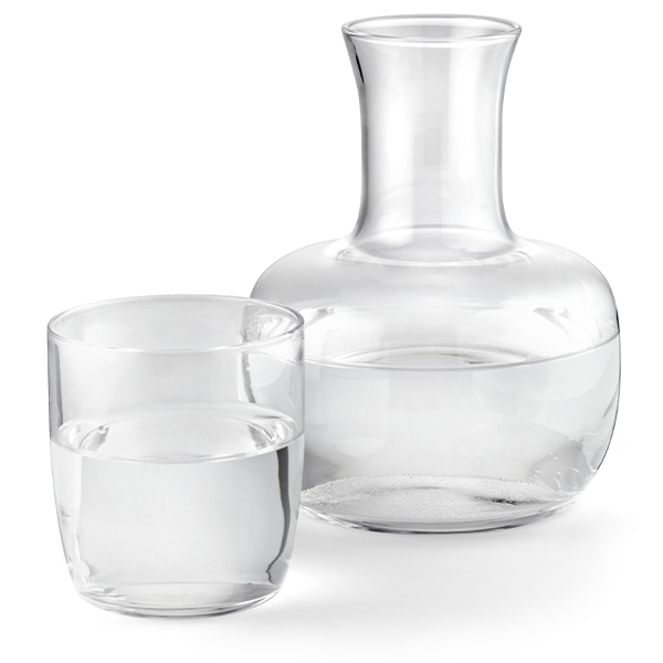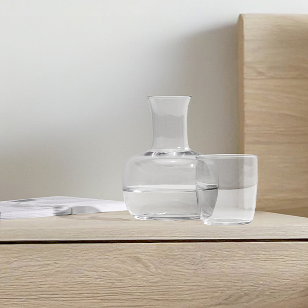 Особено в горещи летни нощи, гарафата за вода е добре дошла на нощното шкафче. Капацитет от 600 мл би трябвало да е достатъчен, за да ви спести ходенето до кухнята – което повече или по-малко би съсипало нощния ви сън. Тънкото гърло на гарафа я прави лесна и удобна за хващане и може да бъде затворена с придружаващата я чаша за пиене (120мл).