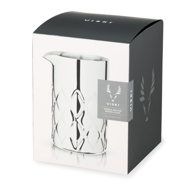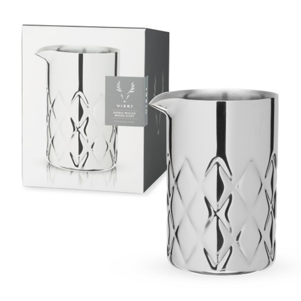 Проектирана и оразмерена за професионални бармани, 550-милилитровата чаша за смесване побира една или две напитки и работи перфектно с бар лъжиците и цедките на VISKI . Геометрично фасетираните страни, дебелата основа и прецизния чучур за изливане ще доставят удоволствие при работа на всеки барман или любител.; Побира до 550 ml (18,6 Oz); Изработена от неръждаема стомана; Двойни стени; Дебела основа - Прецизен чучур за изливане