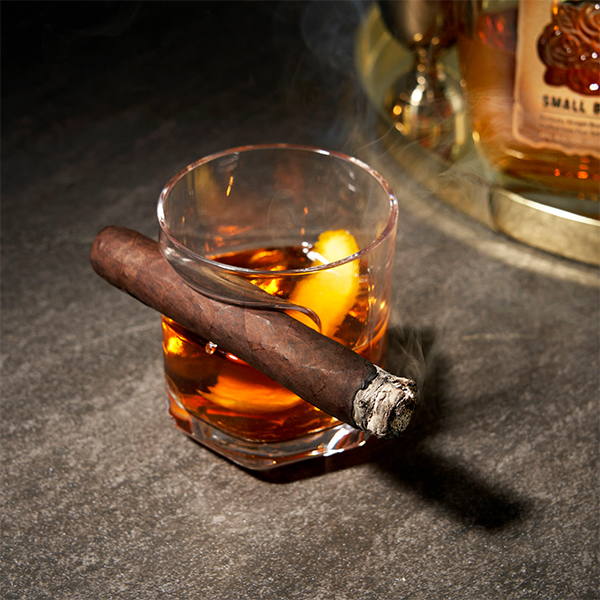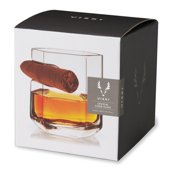 Crystal Cigar Glass от Viski съчетава класическата кристална чаша за уиски с шестоъгълна основа и вградена поставка за пури, създавайки уникална чаша за ценители. Поразително чистият кристал перфектно показва алкохола вътре. Поставката за пура може да пасне на различни размери пури.