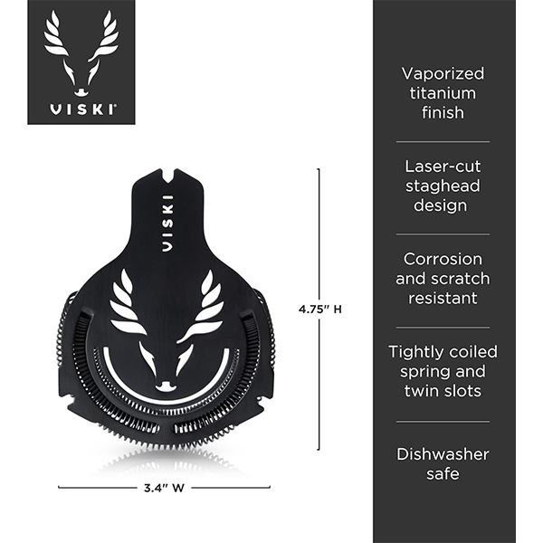 Тази професионална цедка за коктейли внася атмосфера на елегантност във всеки бар. Изработена от неръждаема стомана, тя е с черно PVD покритие, което я прави издръжлива, устойчива на корозия и надраскване.