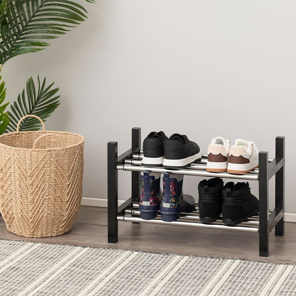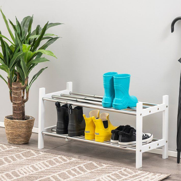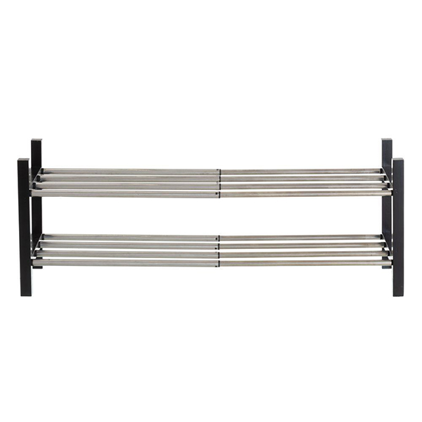 Регулируемата поставка за обувки позволява удобно и функционално подреждане на вашите обувки. С дъбова рамка и рафтове от неръждаема стомана, та се регулира от 57 да 100 см ширина. Дълбочината е 30 см, а височина 37 см Максимално натоварване на всяко ниво е 5 кг, т.е общо 10 кг.