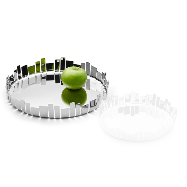 Това, което се огъва нагоре и надеждно пречи на всякакви плодове да се търкалят, символизира по удивителен начин небостъргачите на града, който никога не спи. MANHATTAN е перфектна за плодове, зеленчуци, сандвичи, сладкиши и др., но и като поднос за сервиране на шампанско или аперитиви. Предлага се в два размера - S и L.