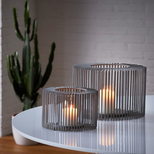 Ултра-шикозните свещници "OSLO"изглеждат скандално добре. На дневна светлина можете да видите очарователната архитектурна решетка, а в ранните вечерни часове нежната конструкция разкрива пълния си блясък с пленителна игра на светлина. Благодарение на защитния стъклен цилиндър около свещта, OSLO може да се използва и на открито. Предлага се в два размера - S и L.