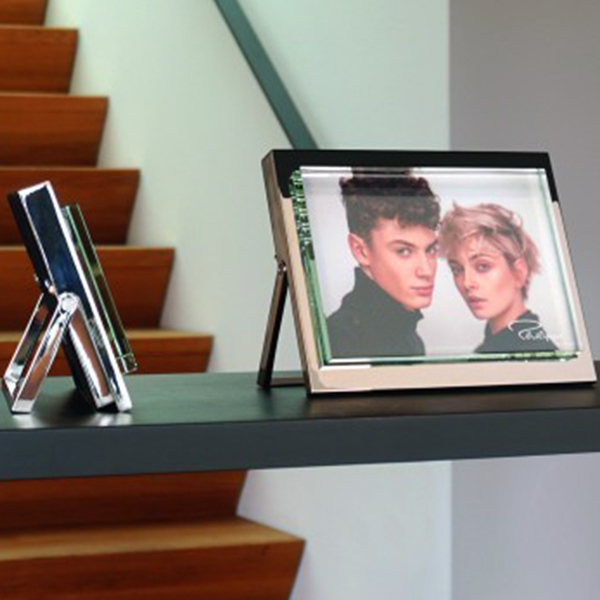 Рамка за снимки “ALBA“ е изработена от лят метал с огледално полирано никелово покритие. Има сгъваема метална стойка на гърба и 12 мм дебело изпъкнало стъкло. Предлага се в два варианта, за снимки с размери: 10х15 см и 13х18 см. Тежка и солидна, с изчистен и стилен дизайн, рамка ALBA привлича вниманието, сложена на рафт или на бюро.