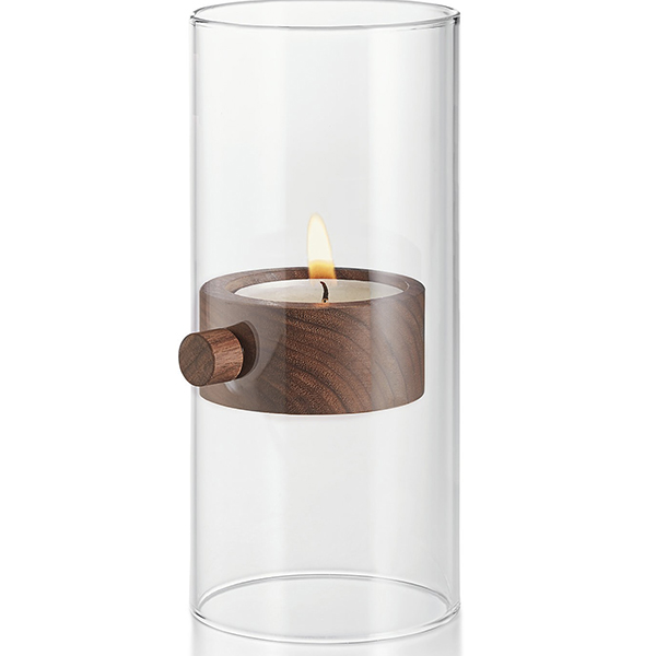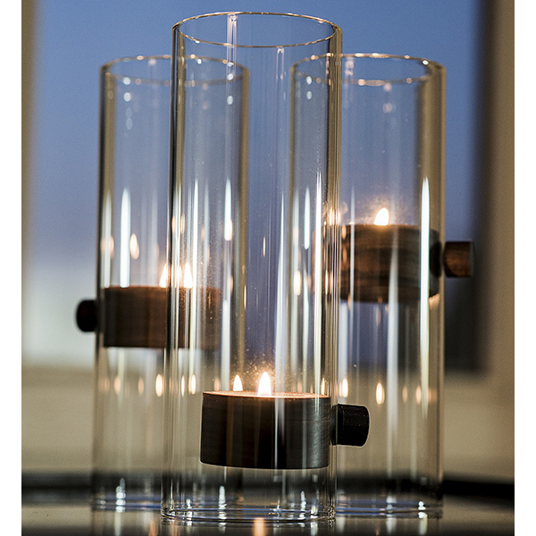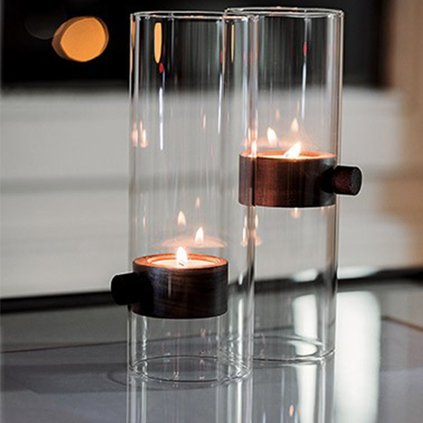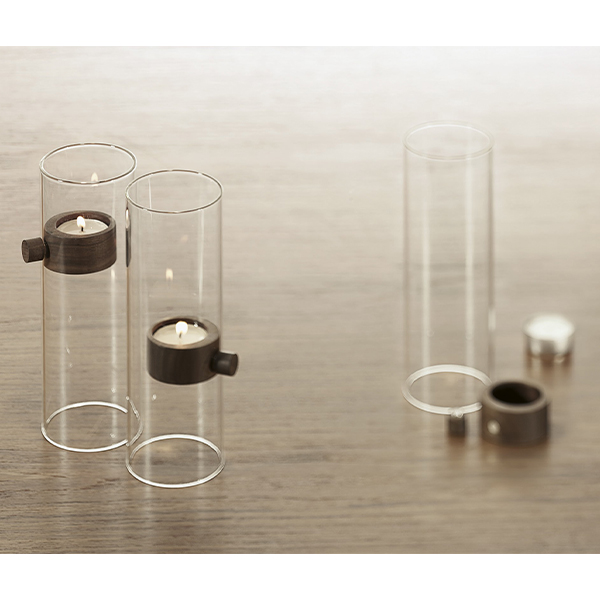 Двата магнита, вградени в ореховото дърво, държат свещника на желаната височина. Повдигнете го до горе, за да запалите или изгасите свещта и след това изберете желаната позиция.