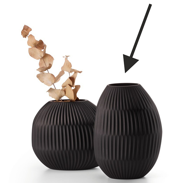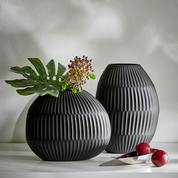 Асиметричната визия в никакъв случай не е случайна, а по-скоро умишлена. Творческа свобода, далеч от прецизно премерената монотонност. Ваза NOIR има прекрасна плисирана визия, която е основната причина за очарователната игра на светлината върху повърхността. Покрита с матово черно, което контрастира с цветния букет. Без съмнение, вазите се правят за цветя, но дори и без тях, вазата стои красиво и стилно като декорация. Предлага се в два варианта - висока и ниска.