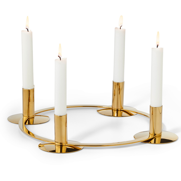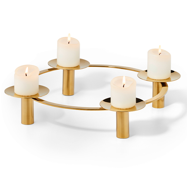 La Serena не е просто свещник, а два свещника в едно. Елегантният и перфектно проектиран свещник, изработен от PVD позлатена неръждаема стомана, може да се използва от двете страни: като стилен венец за четири високи, тънки свещи или като повдигнат венец за четири по-малки и по-дебели свещи. Независимо дали на бюфета, празничната маса или масичката за кафе - вие решавате коя версия на този красив свещник подхожда по-добре на вашата декорация.