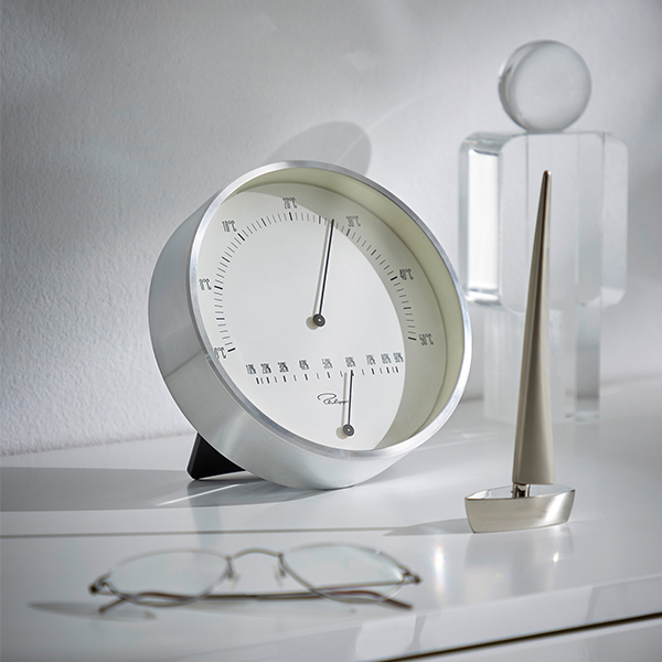 Термометър и хигрометър, комбинирани в елегантен алуминиев корпус с диамантено изрязване: TEMPUS съвестно следи идеалния (мечтан) климат в стаята за спокоен сън, който е между 40% и 60% влажност и температура около 18°C. Използва се чиста физика, която не изисква поддръжка и е екологична. За щастие, биметалната бобина не изисква батерии – прецизната технология рядко е изглеждала толкова чудесно. Практичната сгъваема стойка и възможността за окачване на стената, ви гарантират винаги добра видимост.