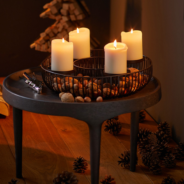 Придайте на масата си вълшебно усещане, като украсите фруктиерата с елхови клонки, ядки и плодове и запалите свещите. PANAMA със своите кръгли форми и топла матово кафява стомана ще внасе коледната магия у дома. Дали на голямата празнична маса или в накой уютен кът на дома - това е мястото, където пламва любовта на коледния сезон! Пригответе се за незабравими моменти, когато свещите горят и смях изпълва дома.