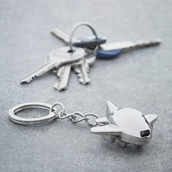 Благодарение на интегрирания светодиод в носа на сладкия реактивен самолет, FLYING WILLY приземява безпогрешно ключовете в ключалката дори в пълна тъмнина.