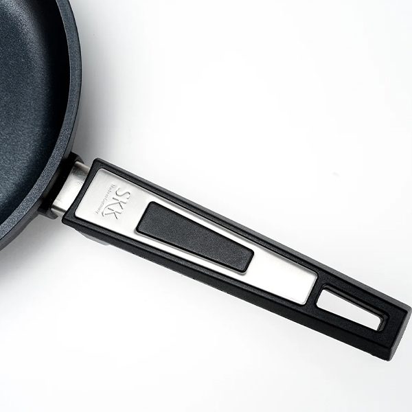 Съдовете от тази серия се характеризират с: до 90% по-висока ефективност при загряване; до 50% спестяване на енергия; до 30% скъсяване на времето за готвене; оптимално разпределение на топлинната енергия; изключителна устойчивост на надраскване и износване; абсолютна равнинност на дъното при високи температури; позволява готвене с малко мазнина; лесно почистване - благодарение на незалепващата повърхност; препоръчва се и за хора алергични към метали. Дъното е с дебелина от 8 до 12 мм, което го предпазва от деформации при много високи температури. Термоустойчивите и топлоизолирани дръжки гарантират безопасна и лесна работа.Дръжките са от висококачествен бакелитов материал и могат безпроблемно да се ползват във фурната до 260°C. Готвенете в летите SKK съдове отговаря като вкусови качества на готвенето в дебелостенни глинени и керамични съдове, с които в древни времена са готвели нашите прародители. Уникалният вкус и бързото приготвяне ще Ви донесат истинско удоволствие!