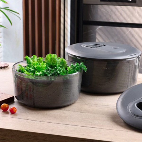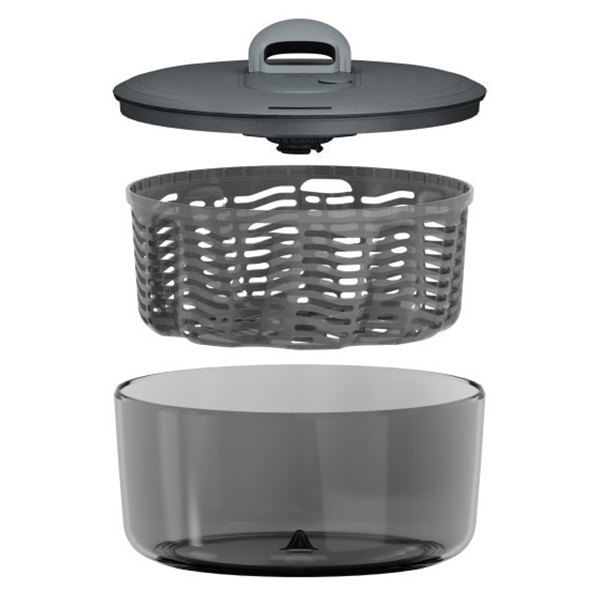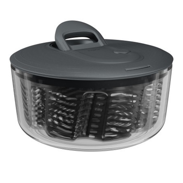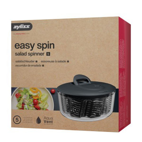 Zyliss произвежда първата си центрофуга за салата през 1978 г. Оригиналната Easy spin е бестселър от години и скоро е актуализиран с нова, ергономична дръжка. Центрофуга за салата Zyliss Easy Spin е всичко, от което се нуждаете, за да измиете и отцедите пресни зеленчуци. Просто издърпайте дръжката, за да започнете да отцеждате измитата салата, и натиснете копчето за спиране на центрофугата. Патентованата кошница Aqua Vent има уникален дизайн, който внимателно завихря зеленчуците около купата при въртене, за да увеличи максимално циркулацията на въздуха и увеличава максимално отвеждането на водата. Готовата салата можете да сервирате направо в купата на центрофугата, а кошницата можете да използвате като гевгир. Easy Spin се почиства изключително лесно. Капакът се разглобява за цялостно почистване. Купата и кошницата са подходящи за съдомиялна машина (Забележка: Капакът не е подходящ за съдомиялна машина).