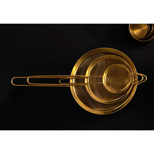 Стоманената цедка в цвят злато на MAKU добавя елегантност и лукс към всяка кухня. Тя също е отличен подарък за всеки, който обича да готви и красивите кухненски аксесоари.