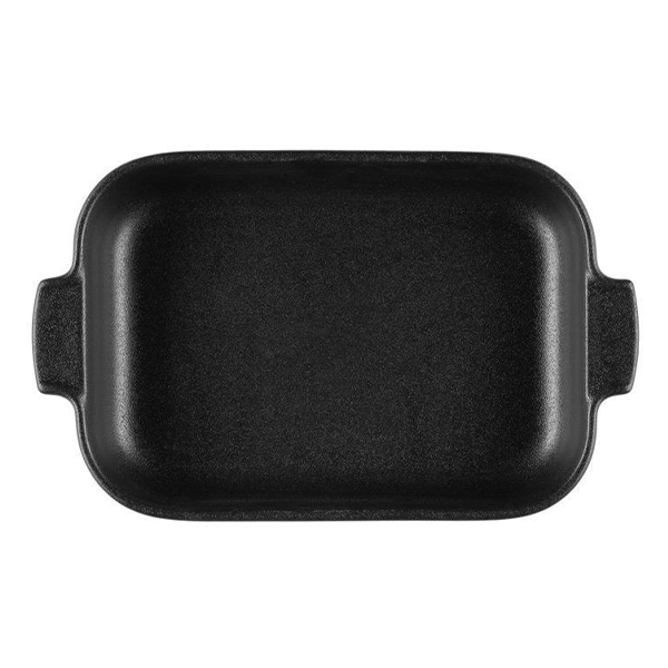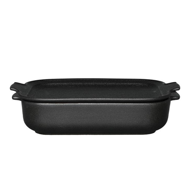 Керамична, издръжлива и стилна черна тава за печене, която служи и като поднос за сервиране. Устойчива на топлина до 220 градуса. Може да се мие в съдомиялна машина.