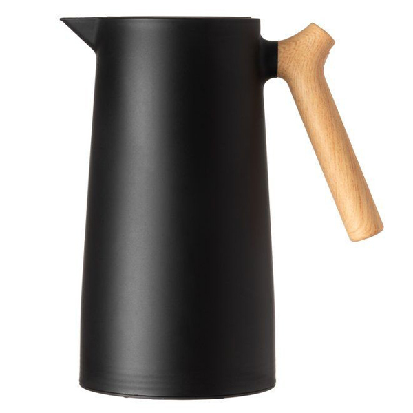Стилна черна термокана със стъклена вътрешност. Впечатлява със стилната си дръжка, имитираща дърво. Капацитет - 1 л