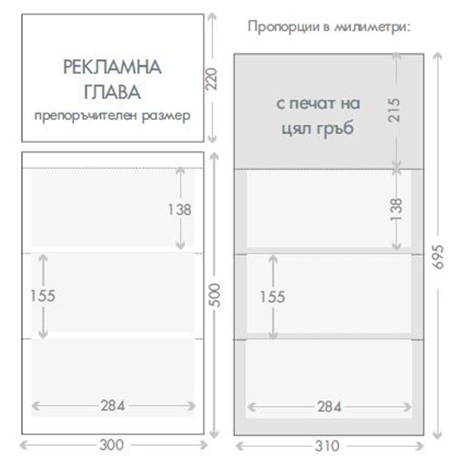 - Цветност: 2 цвята, система Pantone