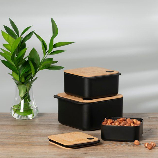 MAKU Кутия за съхранение с бамбуков капак 0,6 л. - размер М