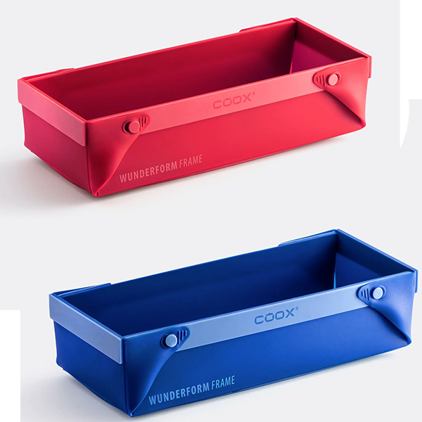 Патентованият COOX WUNDERFORM Frame L променя Вашите навици за печене и готвене. Акцентът на сгъваемия съд за фурна: можете просто да го разгънете в ъглите и много лесно да извадите Вашите печива. Металните подсилвания в ръбовете и основата осигуряват стабилност, което означава, че нищо не се клати или разлива при печене. Благодарение на незалепващата повърхност нямате нужда от мазнина и си спестявате ненужни калории! С обем от около 2 литра, размер L е много подходящ за печене на различни хлябове. Можете да го използвате за всякакви ястия: сладолед, торти, хляб, гювечи, печено или каквото ви харесва!