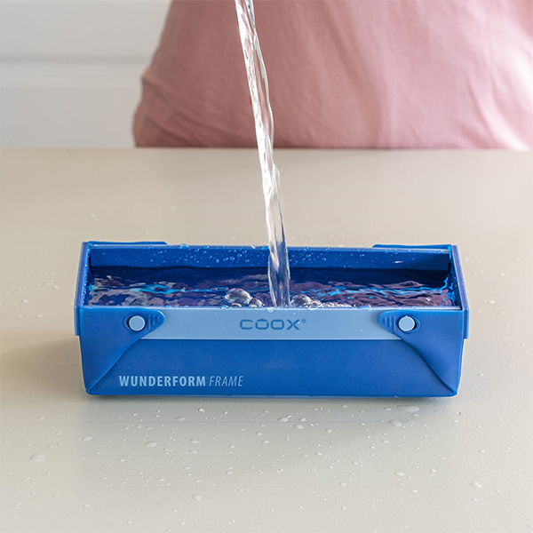 Патентованият COOX WUNDERFORM Frame M променя Вашите навици за печене и готвене. Акцентът на сгъваемия съд за фурна: можете просто да го разгънете в ъглите и много лесно да извадите Вашите печива. Металните подсилвания в ръбовете и основата осигуряват стабилност, което означава, че нищо не се клати или разлива при печене. Благодарение на незалепващата повърхност нямате нужда от мазнина и си спестявате ненужни калории! С обем от около 1,5 литър, размер M е с класическия размер за печене на хляб или сладкиши. Можете да го използвате за всякакви ястия: сладолед, торти, хляб, гювечи, печено или каквото ви харесва!