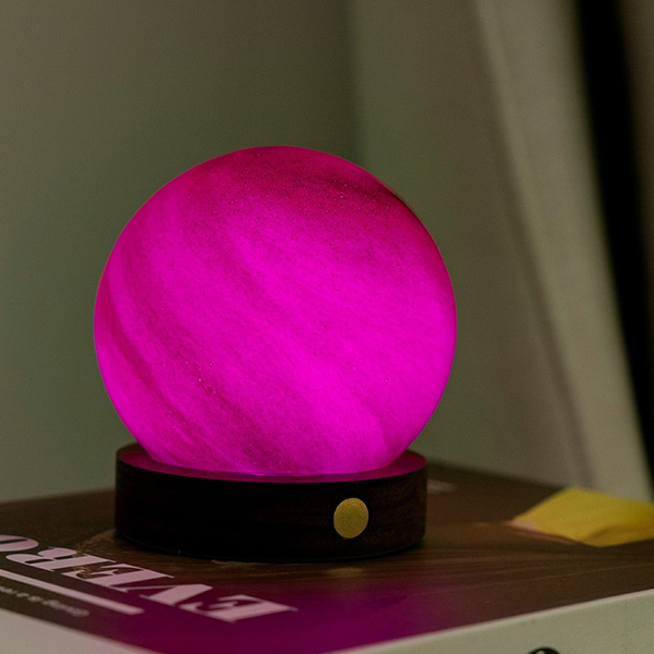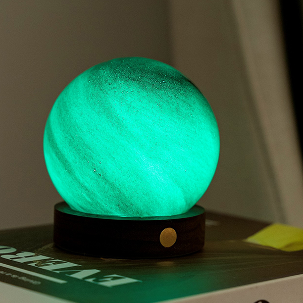 В тиха вечер след дълъг работен ден си представете, че се свивате в леглото с любимата си книга и топла напитка. Мекото сияние на лампа AstraGlass Light изпълва стаята, нейното ръчно рисувано стъклено кълбо хвърля очарователни сенки, които Ви напомнят за спокойна, звездна нощ. Независимо дали предпочитате живата и непрекъснато променяща се игра на 7 въртящи се RGB светлини или спокойния блясък на бяла светлина, тази лампа се адаптира към настроението Ви с просто докосване на медния тъч бутон. Задръжте бутона по-дълго и светлината леко намалява или става по-ярка, предлагайки перфектната атмосфера за всеки момент. С AstraGlass Light можете да създадете всякаква атмосфера, която да отговаря на Вашето настроение и да създадете перфектната вечер за Вашата нощ на релакс.