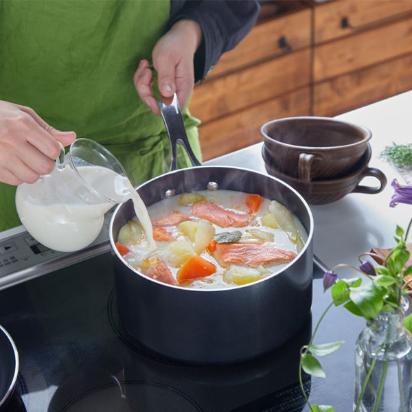 - 3-слойната основа позволява оптимално разпределение на топлината, което ускорява процеса на готвене и пести енергия